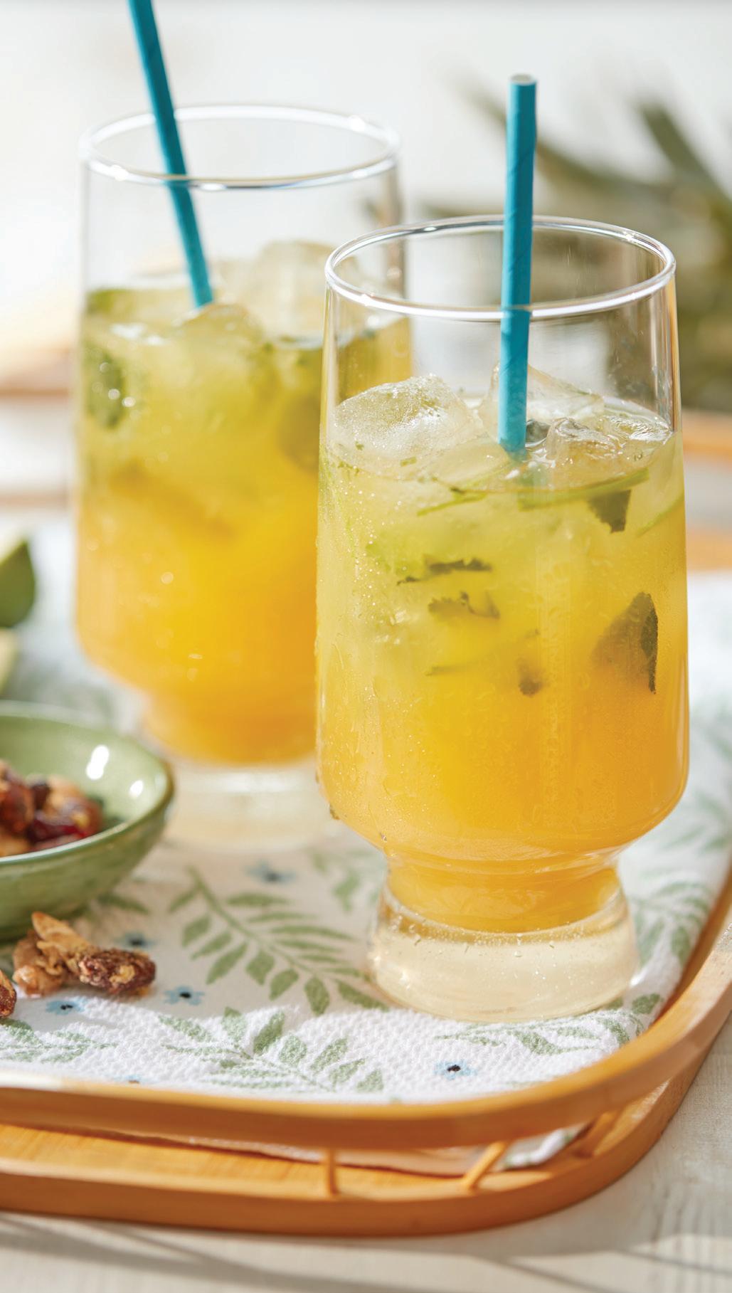 Punchy pineapple and lime, with an herbal note from fresh cilantro, create a fruity, sparkling cocktail — no alcohol needed.