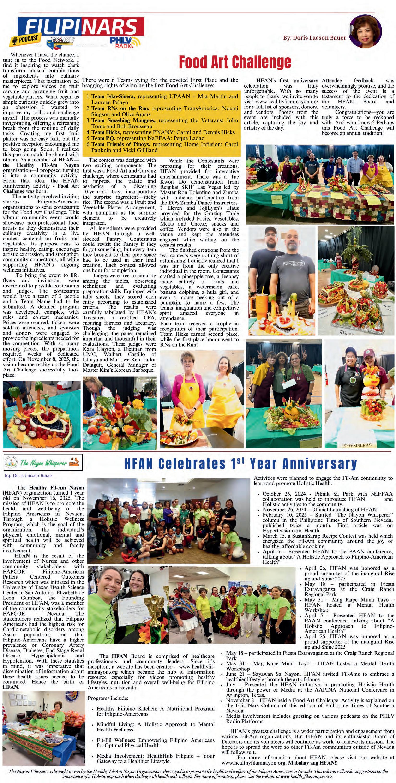THE NEW LEADERSHIP TEAM have been serving under the current administration and were elevated to higher positions in this election. “Their collective experience ensures continuity in leadership while bringing fresh energy and vision to NaFFAA NV as they take on expanded responsibilities for the 2026-2027 term,” expressed outgoing President, Jacque de Joya with great pride “NaFFAA NV and I personally extend our gratitude to all members who took part in the election process and reaffirms its commitment to advancing the interests of Filipino Americans in Nevada through advocacy, community service, and leadership development,” President De Joya further expressed. About NaFFAA NV
