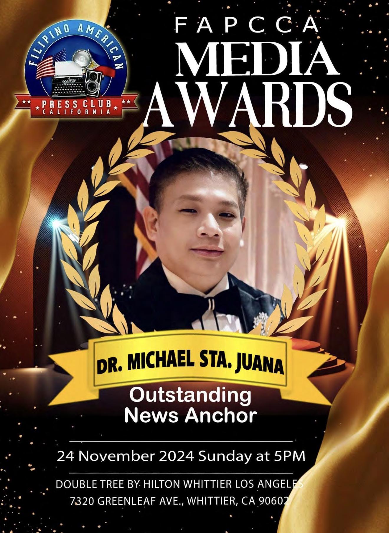 But beyond his achievements in the academic, media and socio-civic scene, he is known to be a hard-working, trustworthy, dependable and kind person; a friend beloved by many. Congratulations, Dr. Michael Sta Juana for the latest feather in your glorious cap; may you continue to shine as the champion of the Fil-Am community and beyond!