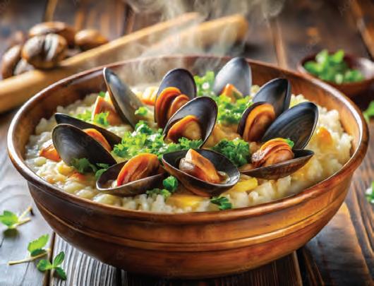 Lugaw na Tahong Mussels in shells, opened wide over creamy rice porridge, kissed with ginger and calamansi, garnished with wansoy. It tastes like the sea met the farm and decided to live happily ever after.