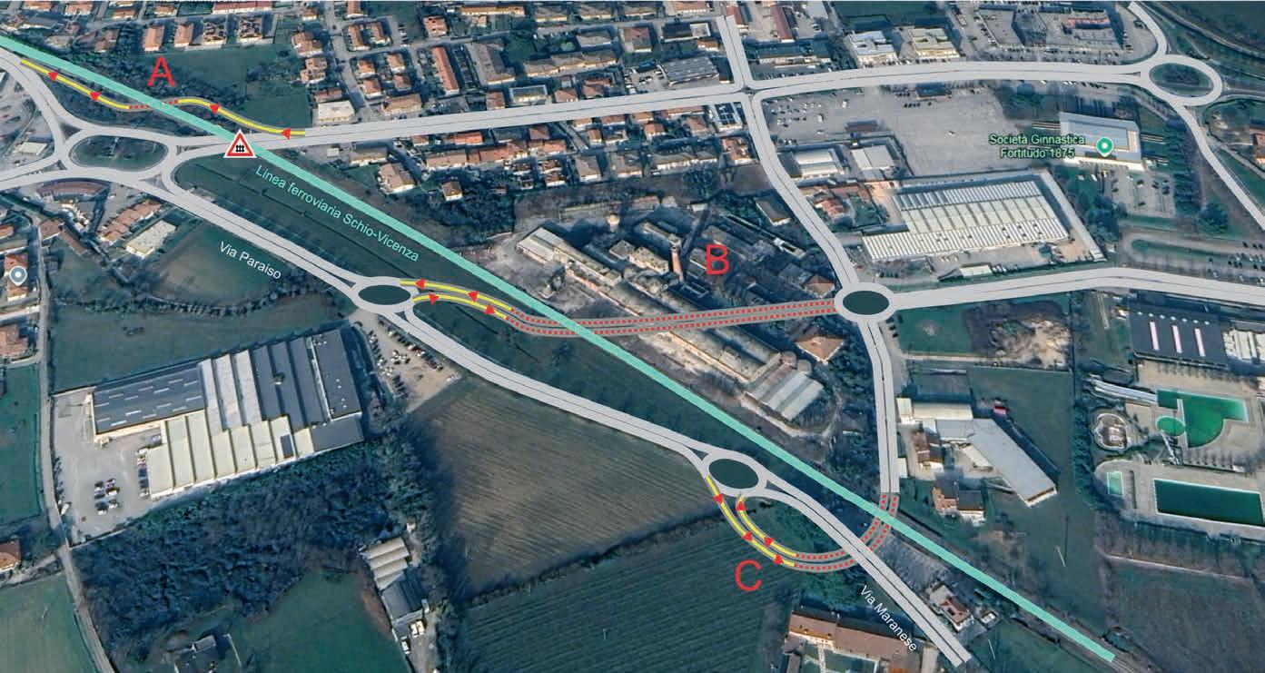 ne dalla Maranese ed è diretto in centro a Schio o verso via Vicenza (o viceversa) sarebbe meno soggetto ad attendere la riapertura del passaggio a livello, non avendo più intasato il passaggio dalle auto ferme dentro la rotonda di viale dell’Industria (sarebbe tuttavia opportuno fare in modo che chi arriva alla rotonda si debba arrestare prima di entrarci, per consentire agli altri veicoli di transitare senza bloccare il flusso, come accade ora a ogni passaggio del treno). 2) chi proviene della Maranese diretto verso via S. Croce, Strada Parco e via dell’industria, avrebbe l’alternativa diretta del tunnel, senza dover arrivare alla rotonda e quindi senza essere costretti allo stop per il passaggio del treno, e lo stesso dicasi per il percorso inverso. 3) gli utenti del nuovo centro medico non avrebbero difficoltà a immettersi in via Paraiso, come invece avviene adesso, soprattutto nelle ore di punta, con momenti di reale pericolo di incidenti”.