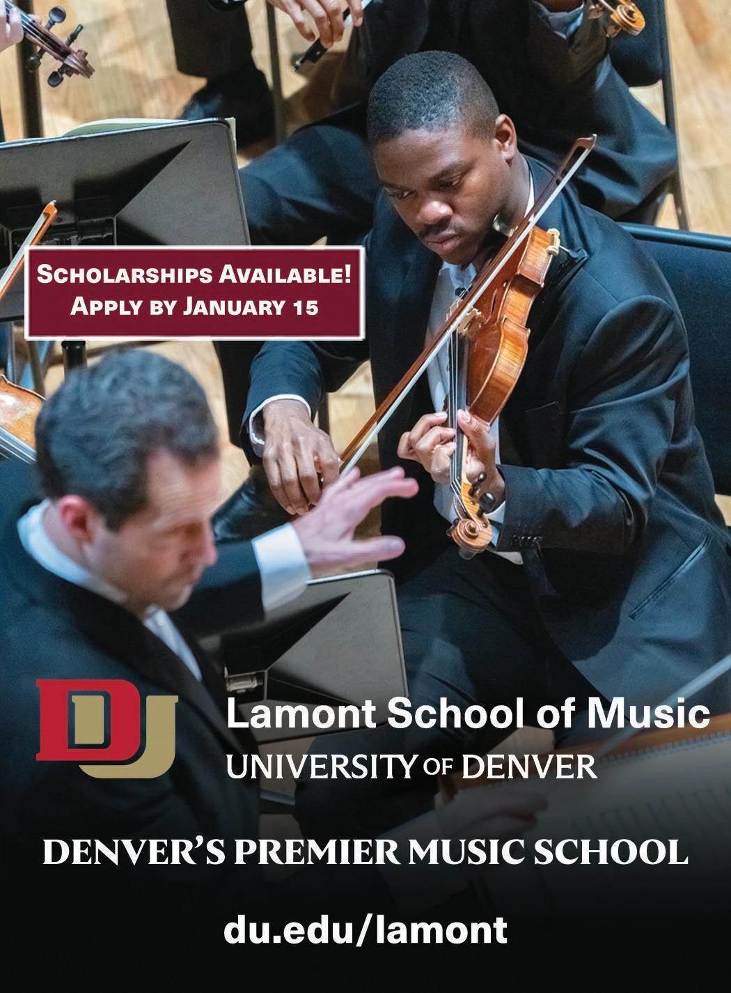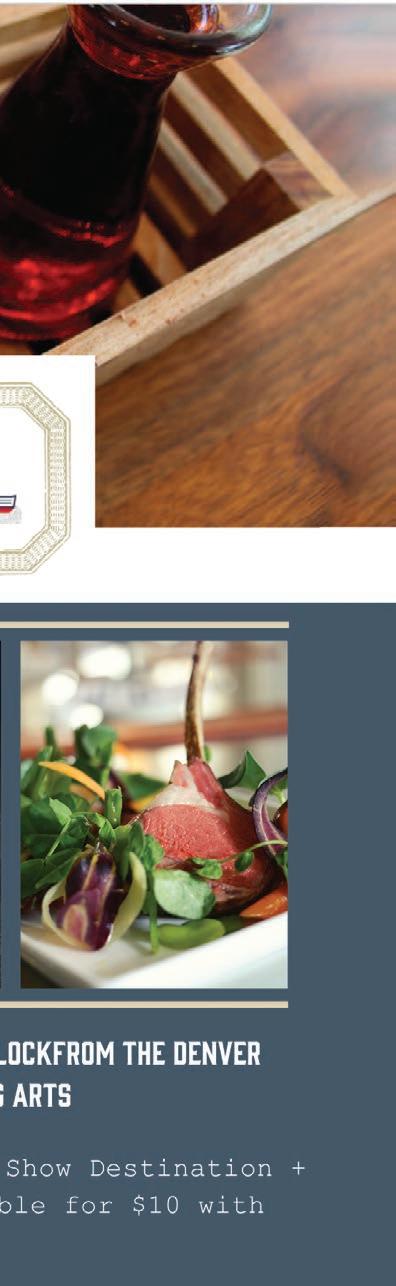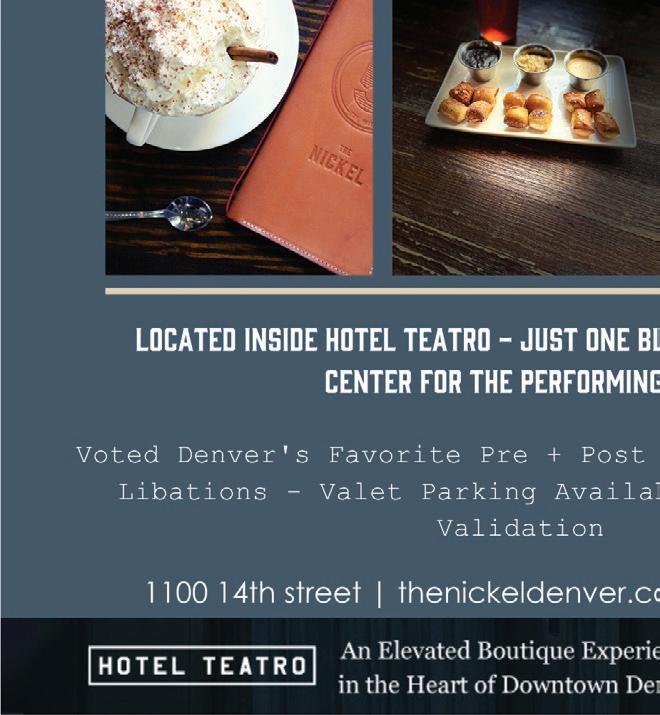 1400 Stout St. Denver 80202 | 720.214.9100 Join us before the show! • $7 VALIDATED VALET AFTER 3PM • 2 BLOCKS FROM DCPA NEW MENUS COCKTAILS | WINE | CRAFT BEER 1400 Larimer street (720) 946-1433 @tamayodenver complimentary house margarita with ticket stub (with purchase of entrée) N o v 1 7 t h - J a n 8 t h , 2 0 2 3 F e b 9 t h - A p r 2 n d , 2 0 2 3 A p r 1 3 t h - J u n e 2 5 t h , 2 0 2 3 J u l y 6 t h - S e p t 1 0 t h , 2 0 2 3 (970) 744-3747 G E T Y O U R T I C K E T S N O W ! C o l o r a d o C a n d l e l i g h t . c o m | 4 7 4 7 M a r k e t p l a c e D r i v e , J o h n s t o w n , C O 8 0 5 3 4