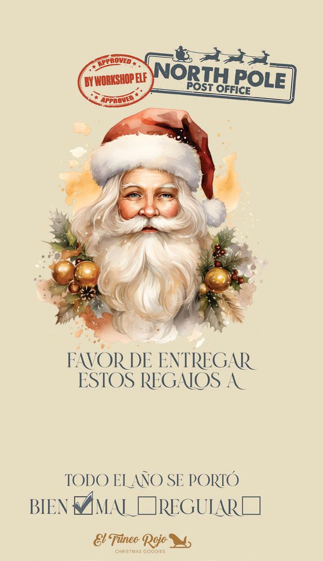 Nuestra Carta a Santa Claus es la forma más divertida para que los más pequeños hagan su lista de deseos navideños. Incluye una hoja predoblada de tamaño carta, impresa por ambos lados. En el primer lado, los pequeños podrán escribir sus deseos a Santa Claus de una manera especial y personalizada. El segundo lado de la hoja cumple la función de sobre para guardar la carta y mantenerla segura hasta que llegue a manos de Santa. Se sella con la pegatina que viene incluida y ¡listo!