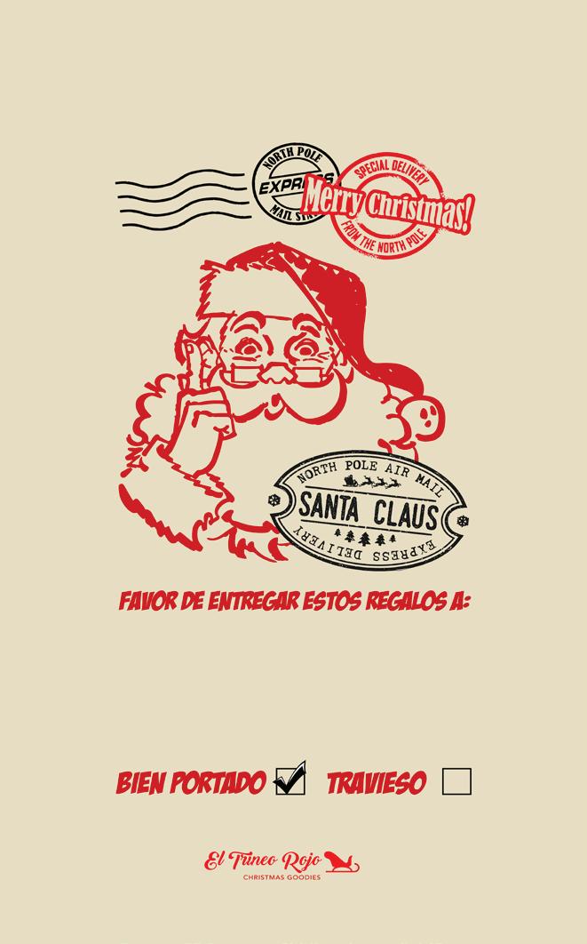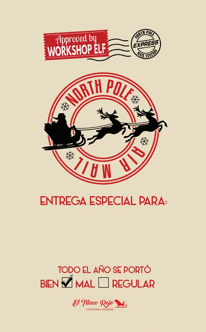 • Carta para Santa con timbre postal y decoración especial incluida en una actividad o travesura.