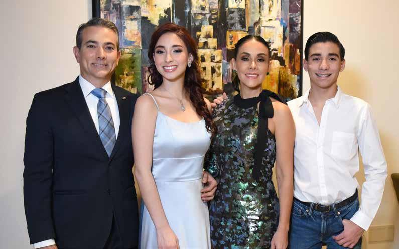 Marifer y Chabely acompañadas por sus papás: César Reyes Ramírez de Alba, Gloria Alfaro Flores, Roxana Pérez Mendoza y Fernando Gutiérrez Martínez