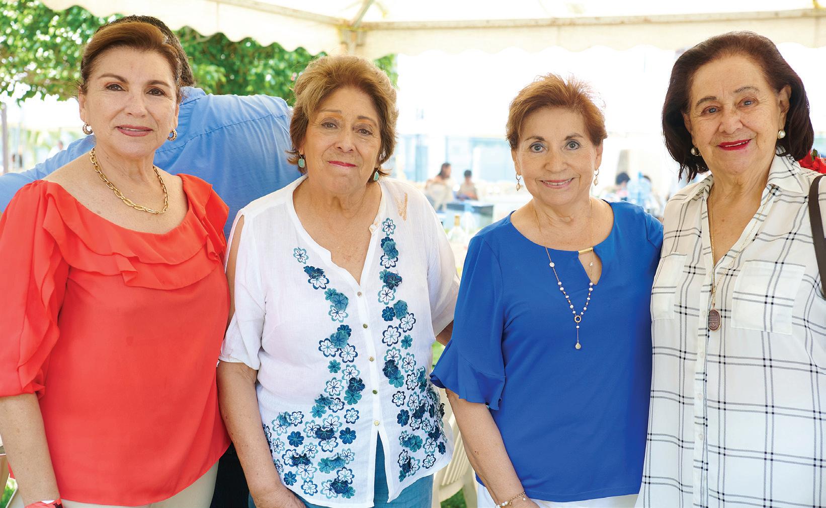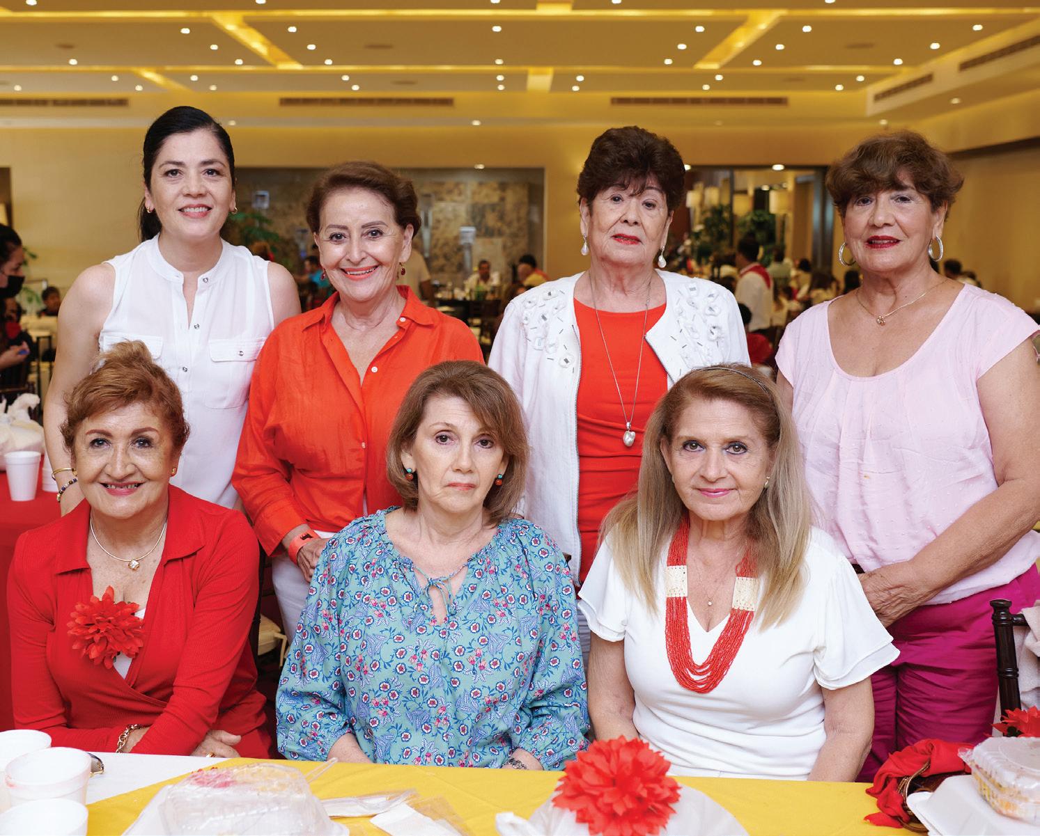 Martha Rojano de Treviño, Amparo Díaz de Flores, Mayra de Inguanzo y Queta Soller de González en compañía de unas amigas