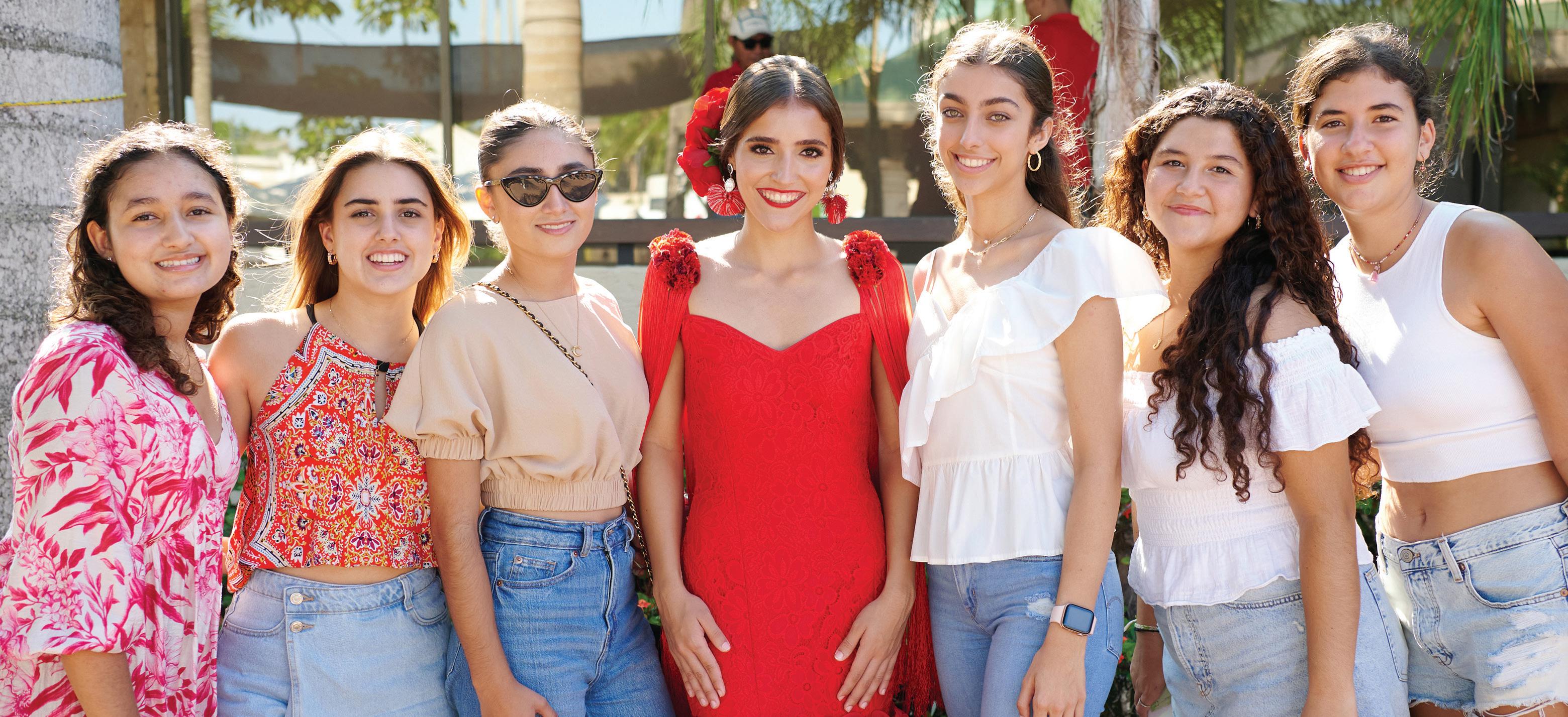 Nuestra reina María Gabriela Solbes Gochicoa en compañía de Ana María González Paniagua, Ana Elisa Delgado Quiroga, Sophia Lárraga Altamirano Daniela Sobera Chemás, Marifer Pérez Cisneros y Elsa Mary Ortega