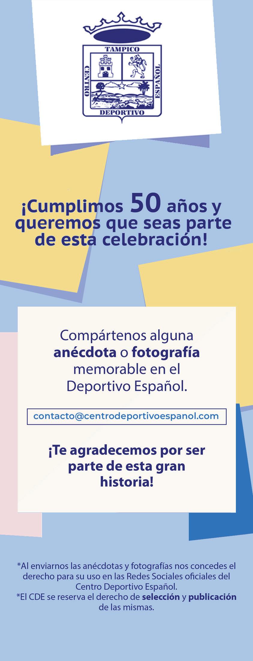 La revista El Gaitero, es una publicación de publi-ideas para el Centro Deportivo Español A.C. prohibida su reproducción total o parcial sin autorización de la editora y el CDE