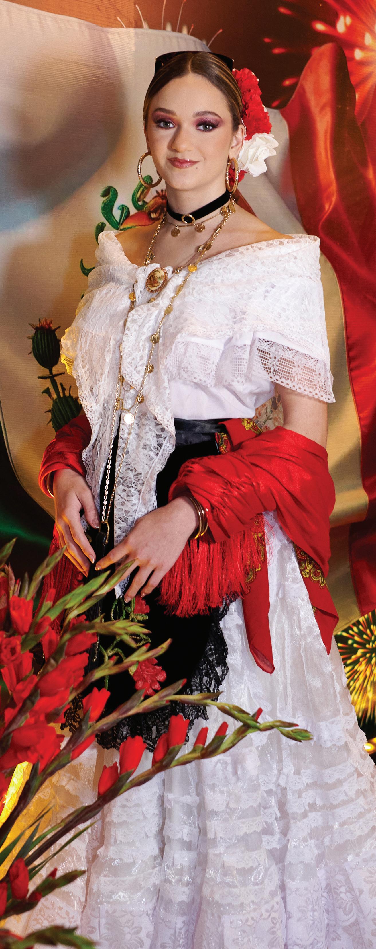 No hay mejor manera de celebrar el Día de la Hispanidad que honrar nuestras raíces, y nuestra reina, María Isabel Inguanzo Gómez, lo hizo con orgullo al lucir el traje de Llanisca Asturiana, un tesoro familiar que ha pasado ya por cuatro generaciones. La historia de este traje comienza con su bisabuela, Maribel Tolibia, quien, al término de la guerra, viajó a Europa con su familia y llegó a Asturias, la tierra de sus antepasados maternos y paternos. Durante una celebración en honor a la Virgen, donde las mujeres lucen sus trajes típicos, su bisabuela adquirió este atuendo, que con el tiempo también fue portado por su abuela Maribel Castro y su madre, Marisa Gómez Castro, cuando fue reina de este Club. Hoy, María Isabel, reina del Centro Deportivo Español, lo lleva con el mismo orgullo y sentimiento, conectándose así con sus raíces y honrando una tradición familiar.