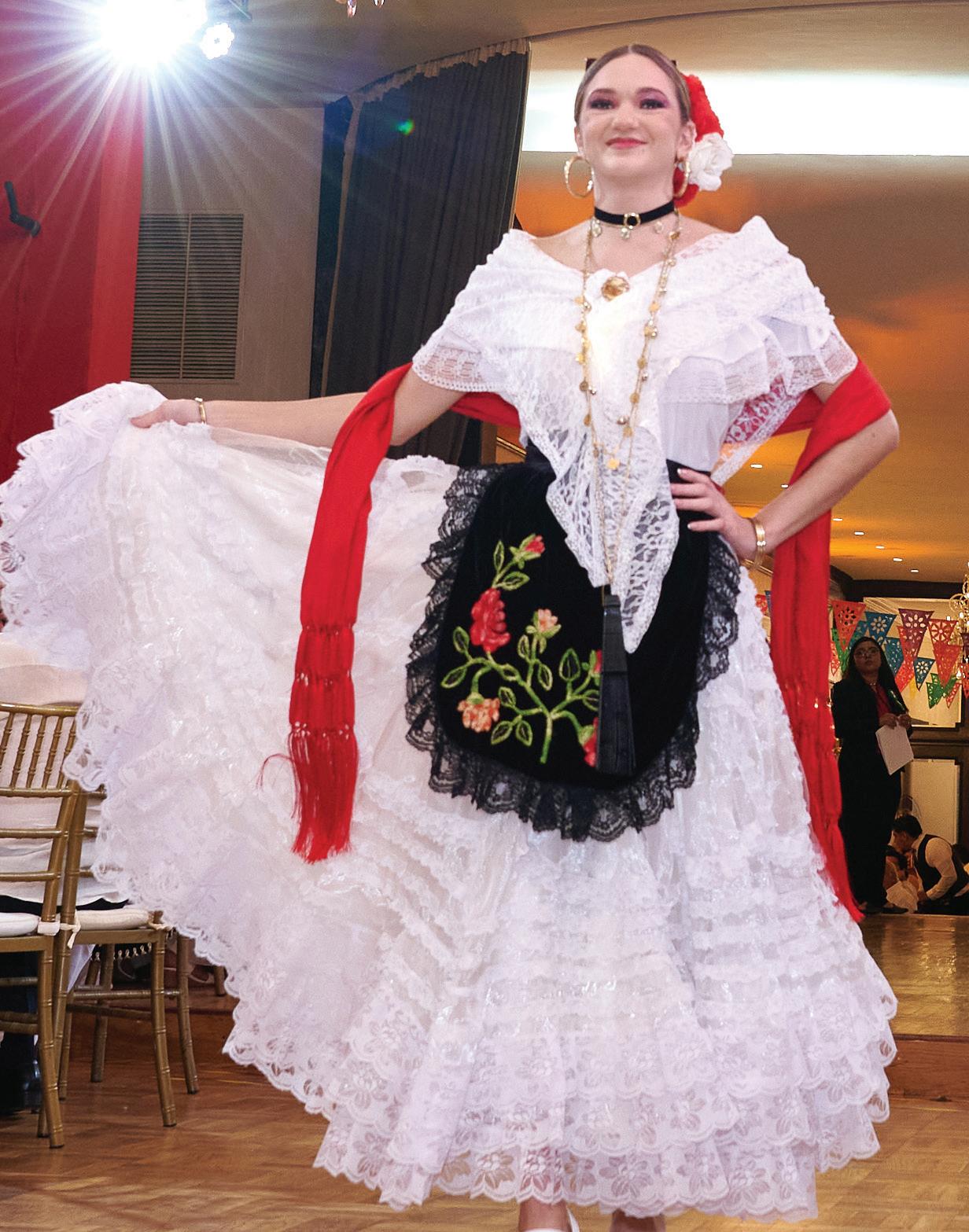 Con un hermoso traje veracruzano, nuestra reina María Isabel Inguanzo Gómez representó al Centro Deportivo Español en la celebración de la independencia de México, organizada por el Casino Tampiqueño el 15 de septiembre. Su espectacular atuendo jarocho, en blanco con acentos en rojo, realzó su belleza y porte.
