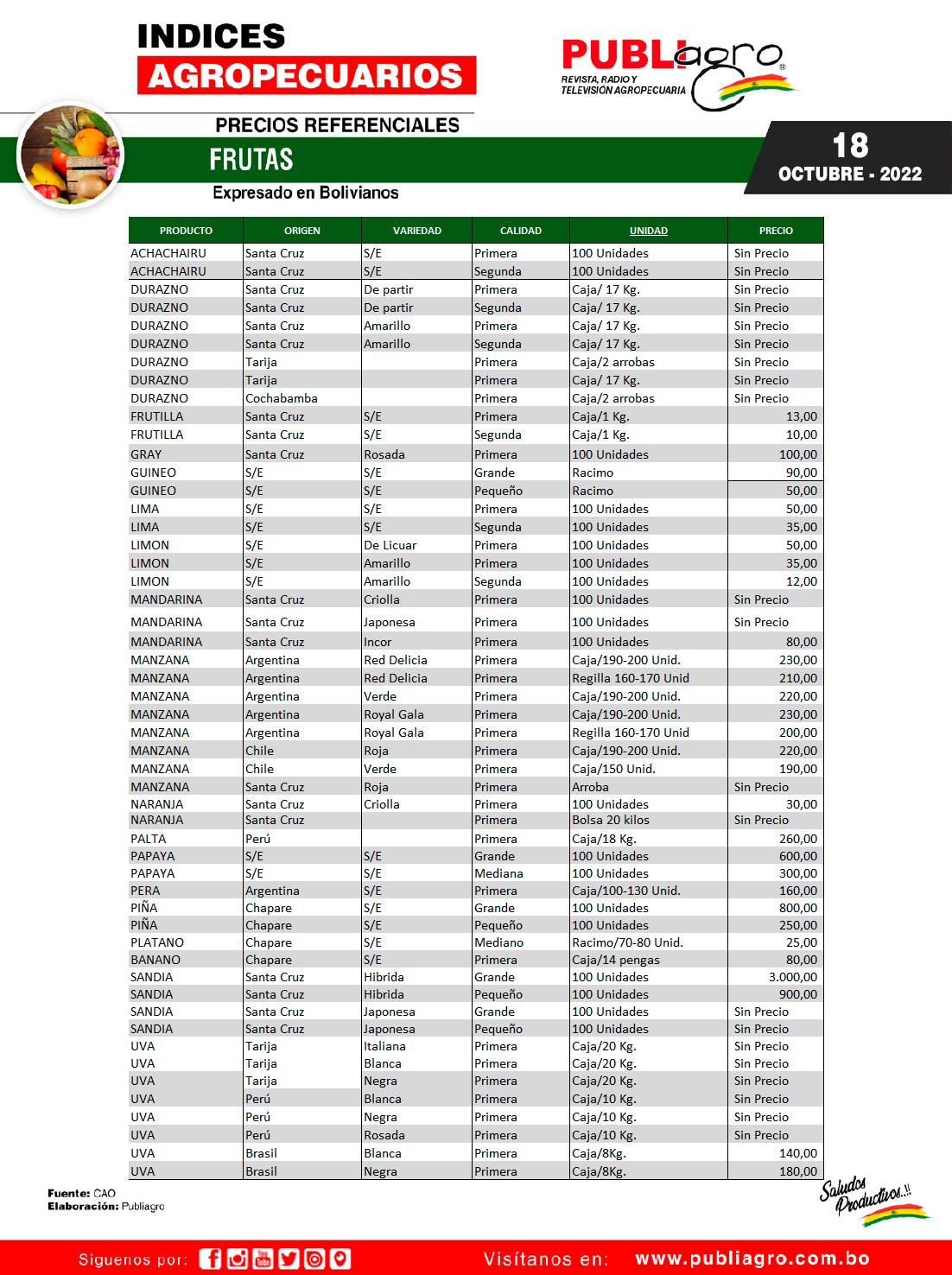 “La subida de los pre cios de los artículos no es una novedad, la papa por ejemplo que antes costaba 35 boli vianos ahora vale 70, la cebolla subió de 20 a 44 y el azúcar que cos taba 160 ahora se tiene que pagar 215”, agregó el directivo.