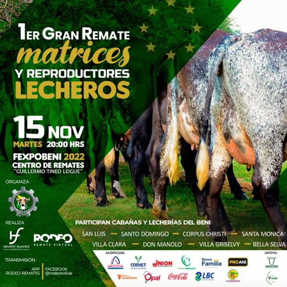 Este 15 de noviembre se realizará el primer remate lechero de alta genética en el Beni. Exhibirán toros reproductores y 35 vacas entre paridas y preñadas de la raza girolando.