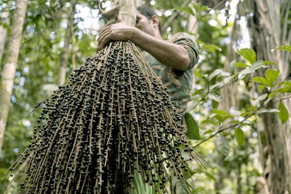 Según datos prome dios cada planta mide entre 25 a 30 mts. de alto, da 4 a 5 racimos de asaí, de los que co sechan entre 3 y 5 kilos del producto orgánico.
