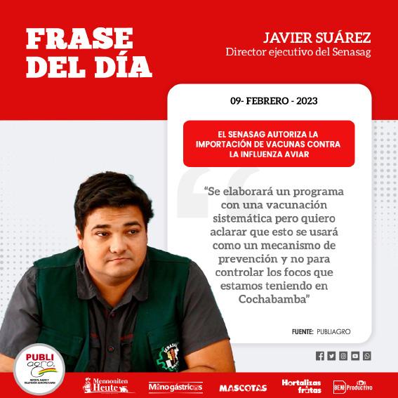 Javier Suárez, director ejecutivo nacional del Senasag, manifestó que todas las acciones sanitarias están enfocadas en restituir a Bolivia su condición de país libre de influenza