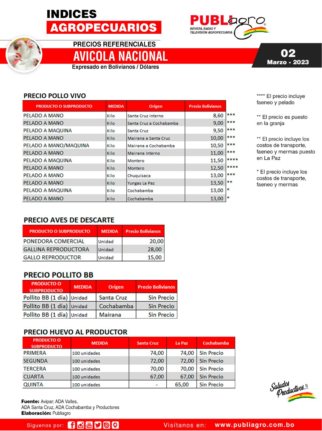 país, está prohibido el ingreso de aves vivas desde el departamento de Cochabamba.