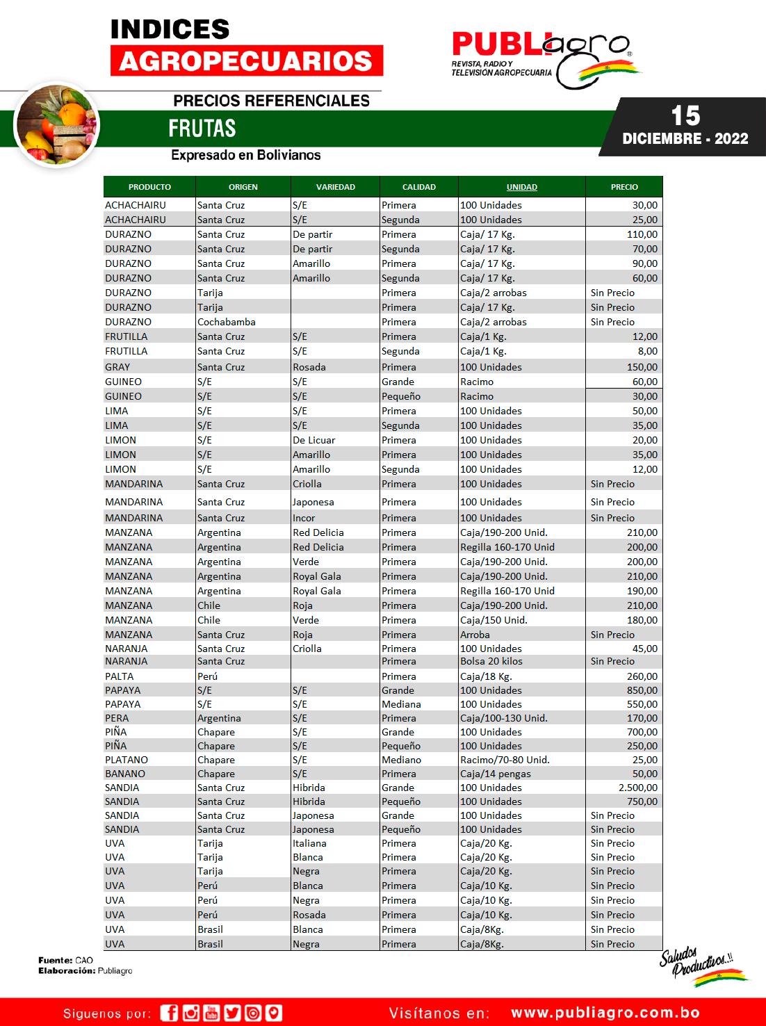 midores, el medio ambiente, la seguridad alimentaria, la oferta exportable, las importadoras de tecnología agropecuaria, están seriamente comprometidas a consecuencia de este flagelo”, cita el pronunciamiento del Comité, conformado por la Asociación de Productores de Semillas (AsoSemillas), la Asociación de Proveedores de Insumos Agropecuarios (APIA), la Asociación Boliviana de Proveedores de Bienes y Servicios Agríco- las y Pecuarios (Aprisa), y el Colegio de Ingenieros Agrónomos