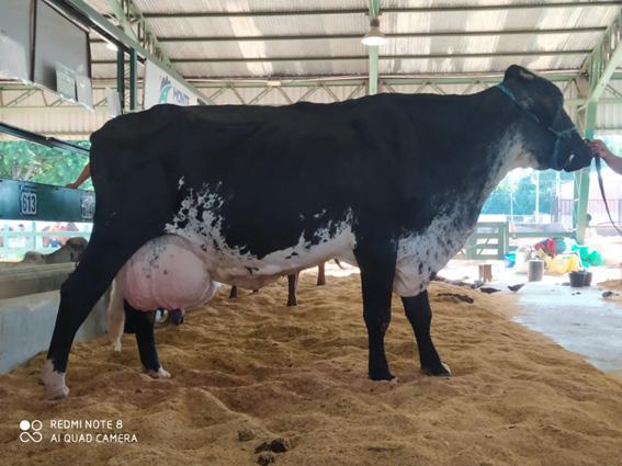 ¨Es un ejemplar de cinco octavos, producto de una vaca tres cuartos, una vaca recordista que en Brasil daba más de 90 kilogramos de leche, su madre, Keila daba hasta 50 kilogramos de leche acá en Bolivia y ahora su hermana también es una de las más lechera de la cabaña¨.