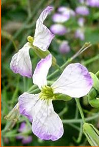 -Flores: dispuestas sobre pedicelos delgados, ascendentes, en racimos grandes y abiertos; sépalos erguidos; pétalos casi siempre blancos, a veces rosados o amari llentos, con nervios violáceos o púrpura; 6 estambres libres; estilo delgado con un estigma ligeramente lobulado.