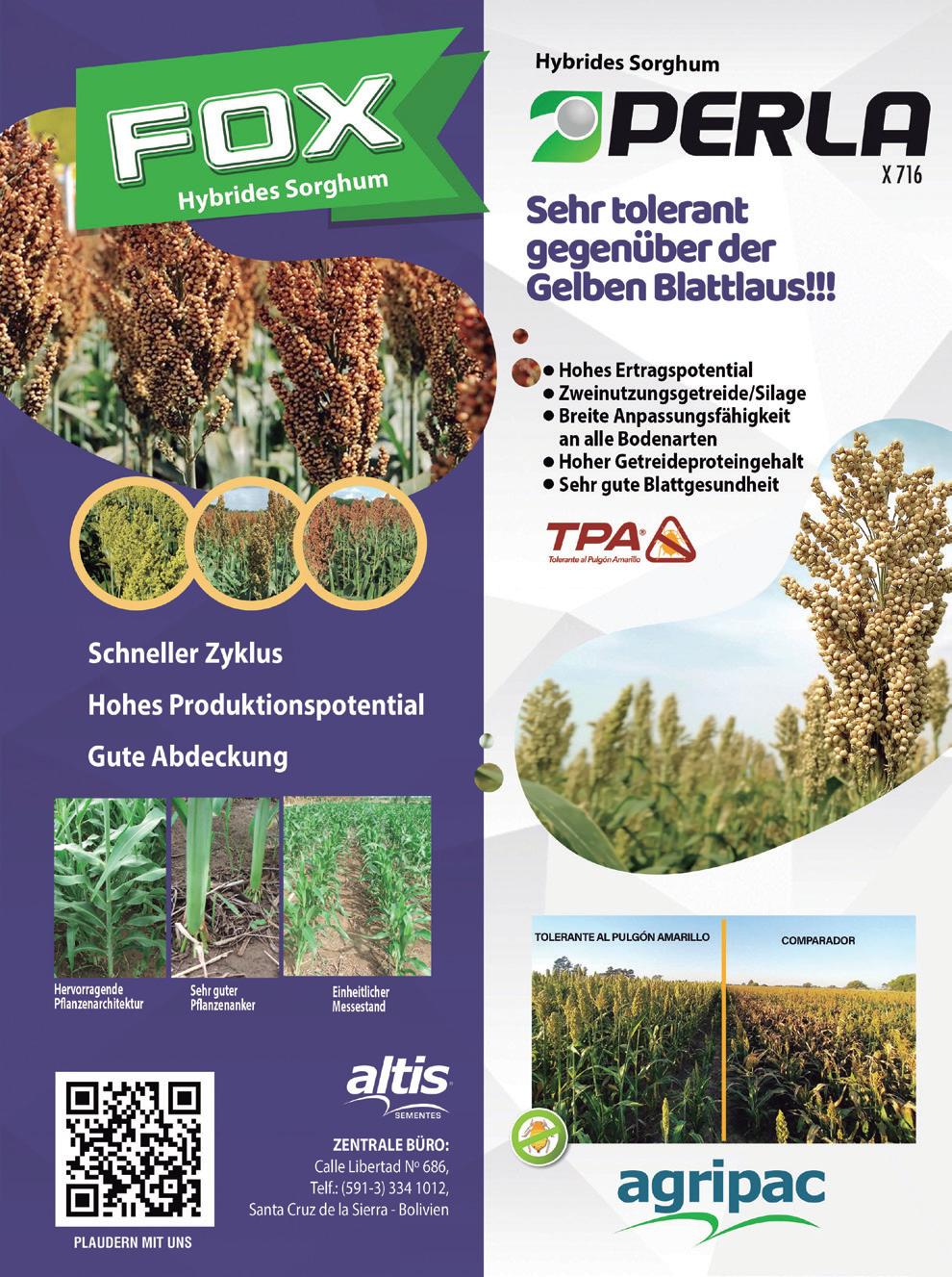 Sie ist geeignet für alle Sorghum-Anbaugebiete von Santa Cruz und hat in der Wintersaison in der östlichen Zone eine gute Akzeptanz gezeigt. Aufgrund ihrer Pflanzengesundheit wird sie sowohl für den Winter als auch für den Sommer empfohlen.