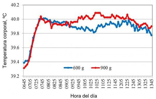 Figura 2. Temperatura corporal promedio registrada después de que se ofreció el alimento a las 0700 h.