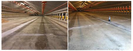 El efecto de covid-19 ha llevado a una mayor concientización de la bioseguridad. Las prácticas como el llevar un registro de visitas son de gran importancia para la bioseguridad de las granjas. Una valla de delimitación debe separar la granja del mundo exterior y cada ciclo de producción debe iniciar de cero, lo que hace que la producción todo dentro, todo fuera sea imprescindible. Como el piso es el primer punto de contacto del pollito en la granja, la higiene empieza en el galpón. En el caso que existan grietas es posible que dentro de ellas queden atrapadas bacterias como la Salmonella y la E. coli y estas infecten al próximo ciclo. Por ello, lo ideal es iniciar con un piso liso sin grietas. Aunque no es posible desinfectar cavidades profundas y estrechas, las grietas deben taparse con un relleno higiénico. Las mezclas específicas de los ácidos orgánicos crean una barrera que previene el crecimiento de bacterias en la cama.