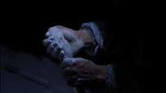 Escena del trabajo en la mina: mineros con casco introducen dinamita en la piedra, apuntan a ciertos lugares con sus lámparas. Fugazmente quiero creer que sus cuerpos son reemplazados por el haz de luz que emana de una cabeza sin ojos, cíclopes que rasgan la oscuridad con líneas de luz que cortan el espacio y que, bajo un hechizo, le dan forma y dimensión.