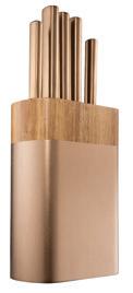SAMURAI™ THE EGG is a 9-piece Knife Block. This stunning knife block set features a unique and trademarked egg shape, crafted from the finest quality stainless steel with a chic mirror finish. It has an acacia wood rim. The combination of Japanese Steel with a matte black antibacterial-ceramic coating. The knife is designed to be food-grade antibacterial, immune to acidic foods and stain resistant too.