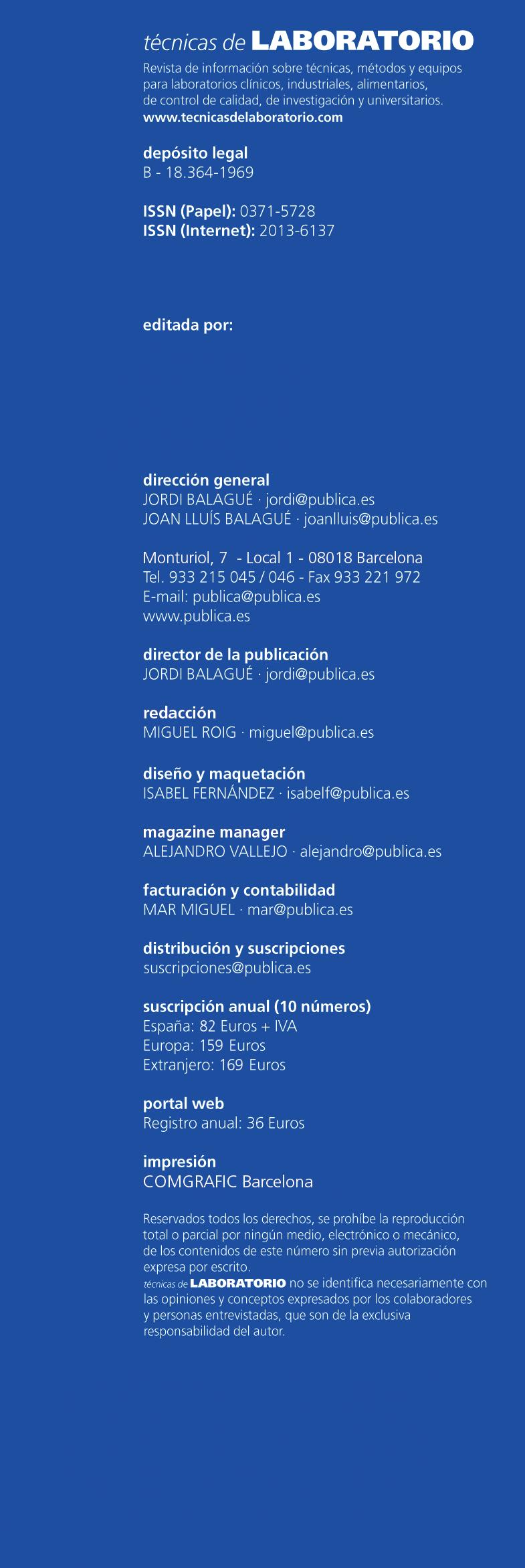 técnicas de LABORATORIO 444 Nº 474 SEPTIEMBRE 2022 SUMARIO Nº 474SEPTIEMBRE 2022 “La Editorial a los efectos previstos en el artículo 32.1 párrafo segundo del vigente TRLPI, se opone expresamente a que cualquiera de las páginas de esta obra o partes de ella sean utilizadas para la realización de resúmenes de prensa. Cualquier forma de reproducción, distribución, comunicación pública o transformación de esta obra solo puede ser realizada con la autorización de sus titulares, salvo excepción prevista por la ley. Diríjase a CEDRO (Centro Español de Derechos Reprográ ficos) si necesita fotocopiar o escanear algún fragmento de esta obra (www.conlicencia.com; 91 702 19 70 / 93 272 04 47)”. hazte fan Revista disponible también para: 446 novedades 466