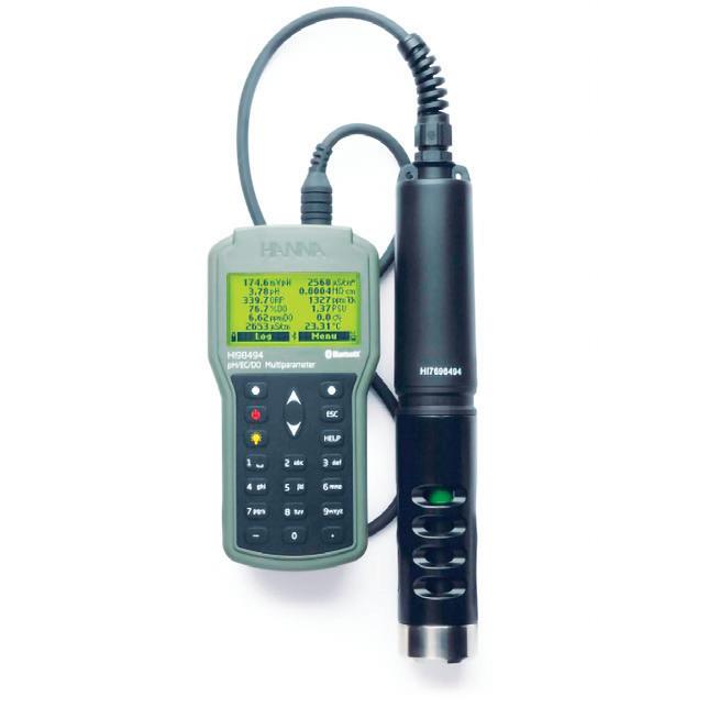 En esta ocasión presenta la novedad del medidor de pH / CE / OD (óptico) con co nexión bluetooth, HI98494, que añade las ventajas de la medida de oxígeno por lu miniscencia (LDO) a su ya contrastada se rie 9819x de equipos multiparamétricos. Funcional y preciso, este equipo es ca