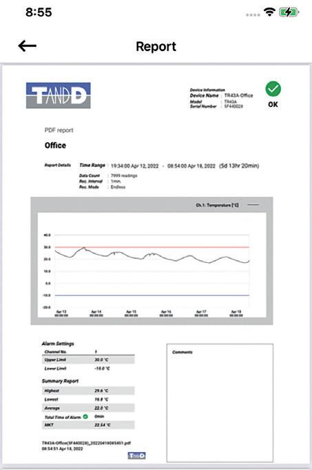 • Registro de intervalo automático de hasta 45.000 muestras o registro bajo demanda