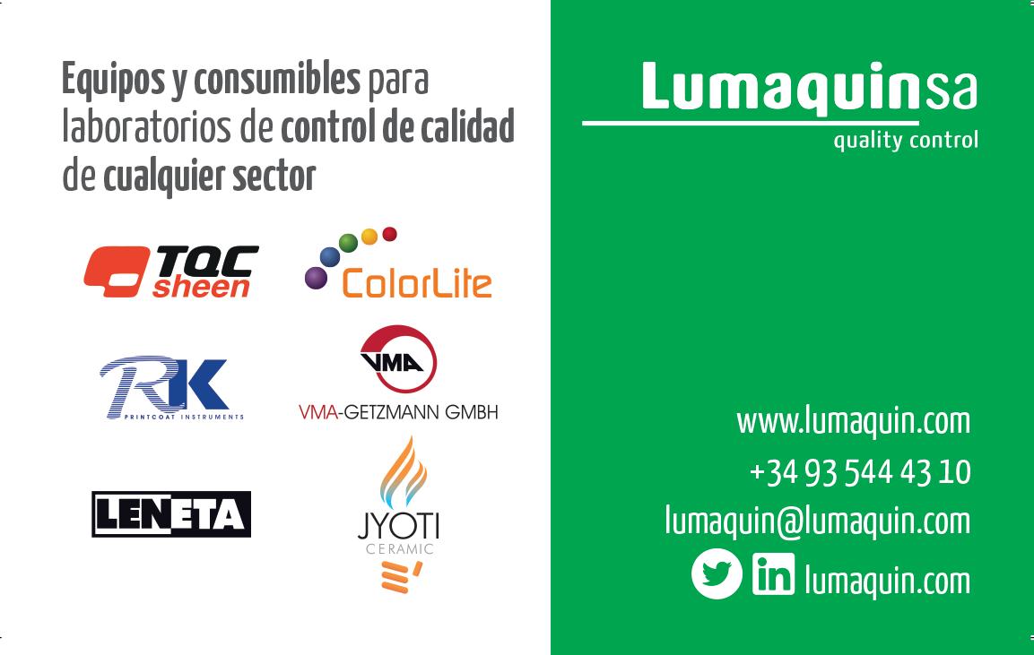 Lumaquin es una empresa que lleva más de 45 años en el mer cado, aportando soluciones a los técnicos de laboratorio y distri buyendo los equipos y consumibles necesarios para el control de calidad en la producción o postproducción de producto de cual quier sector. Su filosofía radica en el asesoramiento a la industria sobre la elección del equipo indicado para sus laboratorios de I+D o de Calidad. Pone a disposición de los clientes equipos de control de calidad, siempre de los fabricantes más reconocidos.