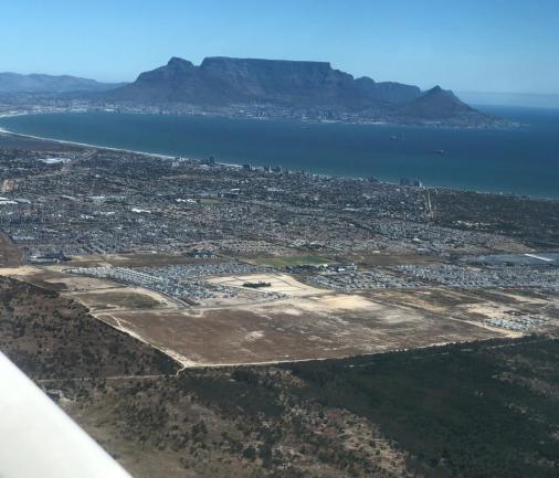 Waterfront Kaapstad en weer terug naar Stellenbosch. Alex deed de radio, maar ik hoorde hem alleen maar melden waar wij zaten, geen enkele respons van andere vliegers, vliegveld of ATC. Dus ja, wel gedisciplineerd, maar een beetje in de leegte praten, leek mij. Maar goed, had ie ook wat te doen....!