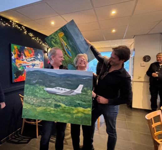 Onder luid applaus en verrassende blikken van Gijs en Ronald werden de schilderijen in ontvangst genomen.