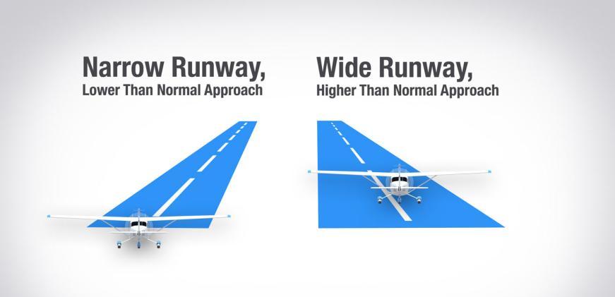 Dat komt doordat je, wanneer de landingsbaanverlichting fel brandt, het gevoel hebt dat je dichter bij de landingsbaan bent dan je in werkelijkheid vliegt, waardoor je een hogere nadering vliegt dan normaal. Waarom? Omdat je bij fel licht de illusie hebt dat je lager en dichter bij de landingsbaan bent dan je werkelijk bent, waardoor je een hogere glijvlucht volgt dan normaal.