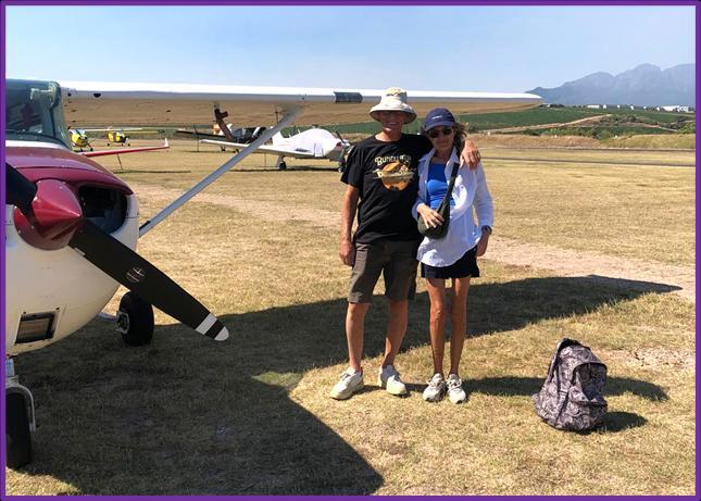 Ging allemaal perfect, tot het touchdown moment. Plots een enorme zwieper naar links, omhoog en weer terug met een dreun op de runway. Pffff, wij dachten dat alles gebroken was, maar Alex zei alleen: “ja, Stellenbosch is best lastig, hé”?