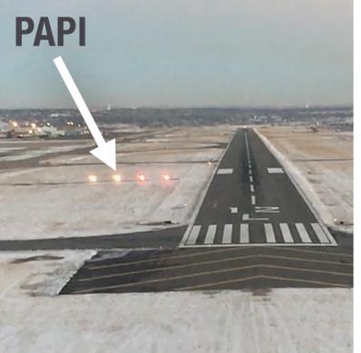 Veel vliegvelden met verlichte start- en landingsbanen beschikken over een naderingsysteem, visueel, elektronisch of een combinatie van beide. De PAPI is wel de meest bekende.