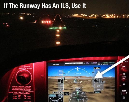 Als de landingsbaan een ILS-systeem heeft, is dat nog prettiger. Door de ILS-frequentie te activeren, heb je een elektronische hulp als back up. Dit is een hulpmiddel dat je kunt gebruiken, zelfs als je geen instrumentrating hebt. Oefen wel een paar keer met bijv. een instructeur om er vertrouwd mee te raken.