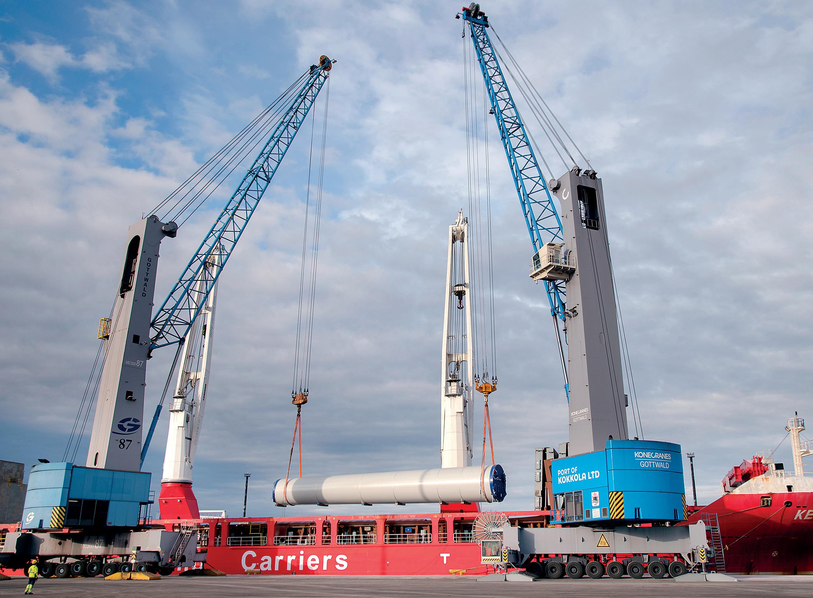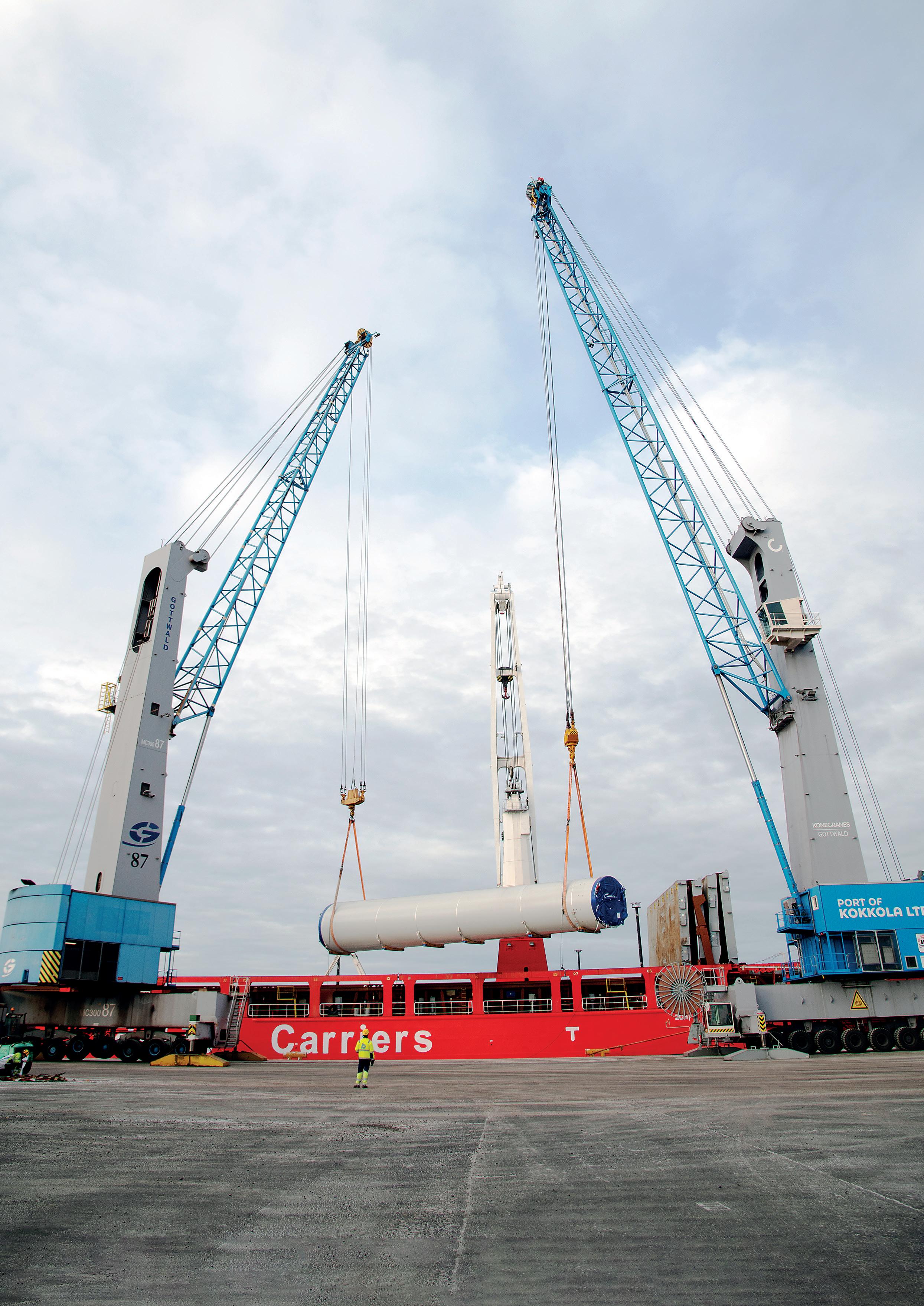 Handling wind turbine components in the Silverstone Port in Kokkola