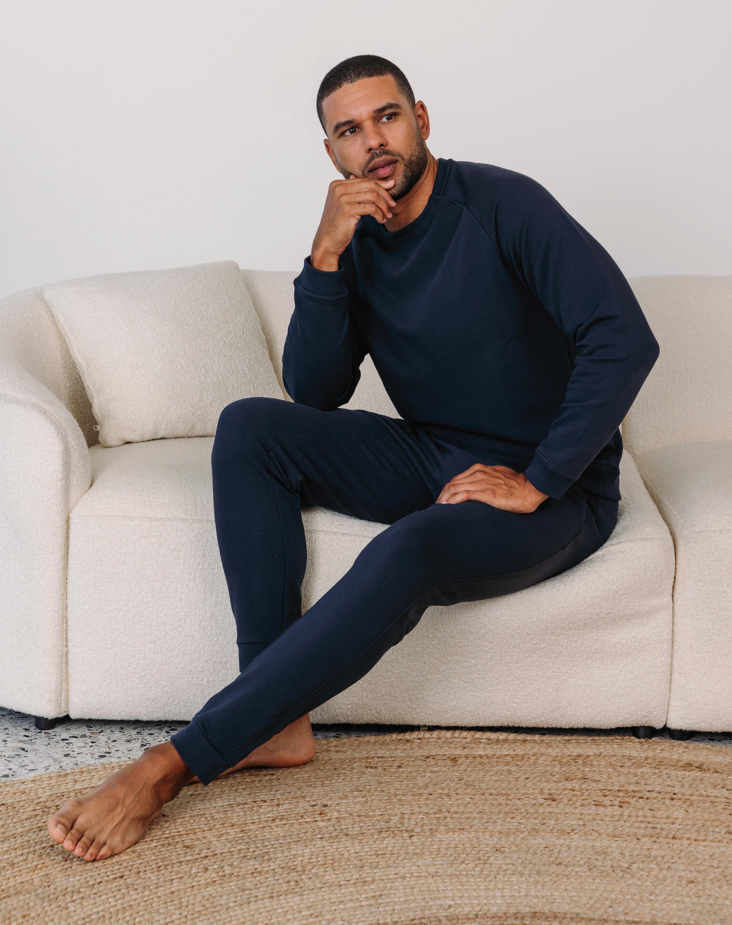 Weekend Crew in Stone Navy, $88 Weekend Jogger in Stone Navy, $98