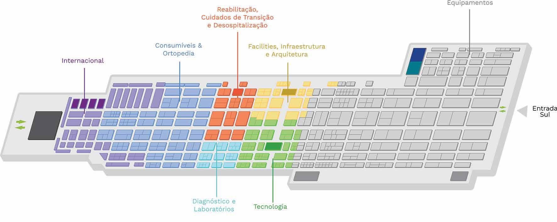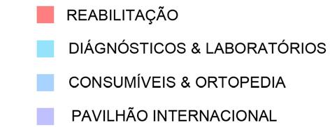 reabilitação, Cuidados de Transição e desospitalização, pavilhão vermelho. Nesta área, apresentamos equipamentos e soluções para ortopedia, fisioterapia, home care, bens de consumo, órteses e próteses, além de equipamentos de resgate e para ambulâncias, entre outros itens.