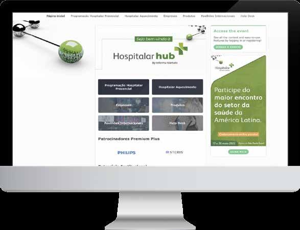 De olho no crescimento do mercado de saúde no ambiente digital, a 27ª edição da Feira Hospitalar apresen ta neste ano a plataforma Hospitalar Hub, um espaço digital e global em que é possível consumir conteúdos exclusivos e interagir com as empresas expositoras. Lançada há um ano, em 2021, a plataforma já teve um “esquenta” em maio daquele ano ao transmitir a 1ª edição da Digital Journey by Hospitalar, iniciativa que reuniu mais de 4 mil participantes que acompanharam mais de 30 horas de conteúdo sobre o setor de saúde.