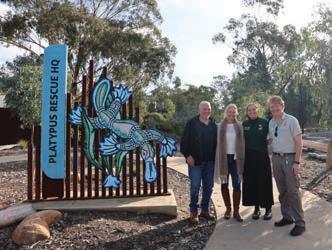 CLOCKWISE: ABBY AND SON NIKOLAI AT ZOOFARI, SYDNEY TARONGA ZOO; ABBY AT THE WOMEN IN INDUSTRY AWARDS (©PRIME CREATIVE); THE PLATYPUS RESCUE HQ AT TARONGA WESTERN PLAINS ZOO IN DUBBO, WHICH APE CONTINUES TO SUPPORT.