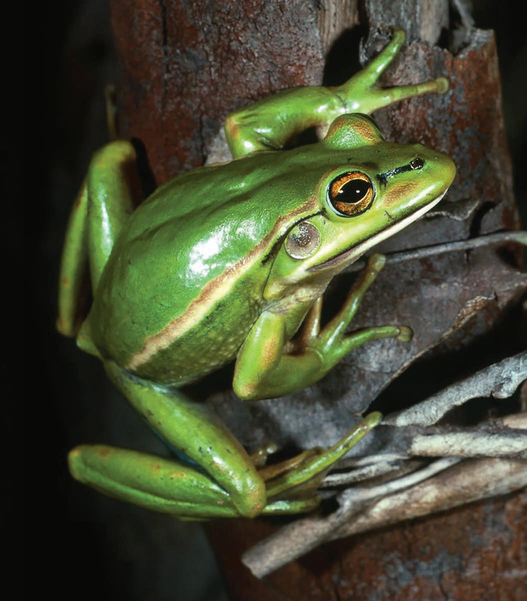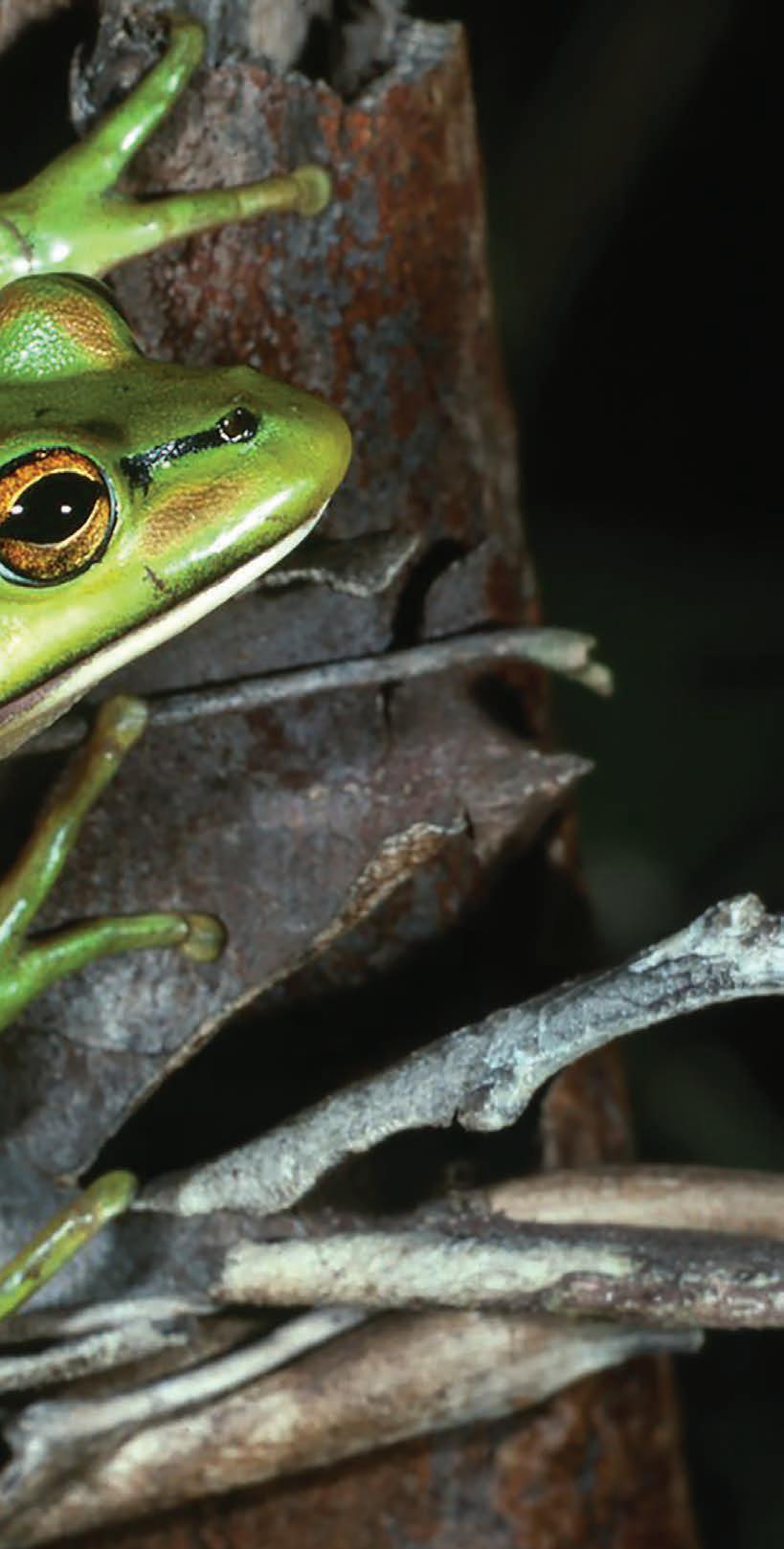 THIS PAGE: THE GREEN AND GOLDEN BELL FROG IS BEING BROUGHT BACK FROM THE EDGE OF EXTINCTION.