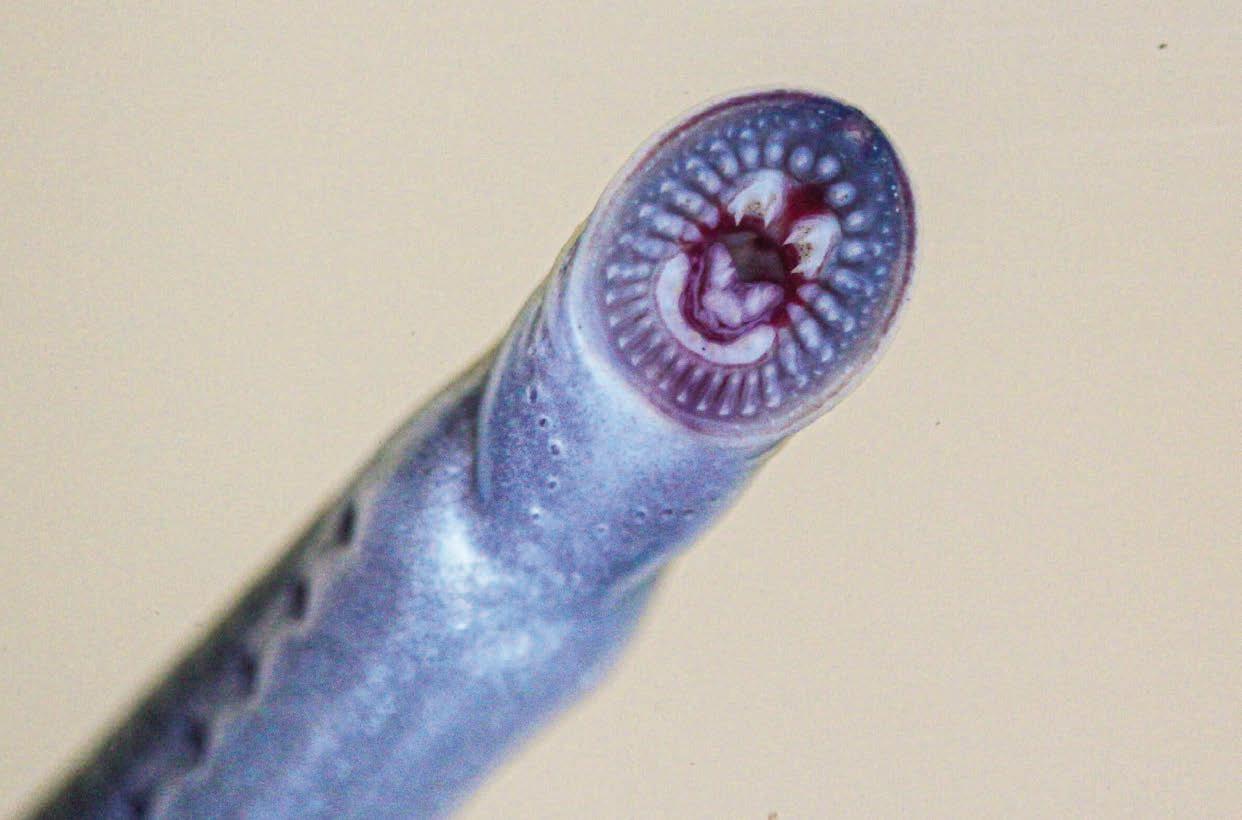 A lamprey is an ancient fish dating back to the pre-dinosaur era. The eel-like creature has no jaw or scales, replacing a "normal" mouth with a sucker-like disc lined with sharp teeth used to feed on the blood and tissue