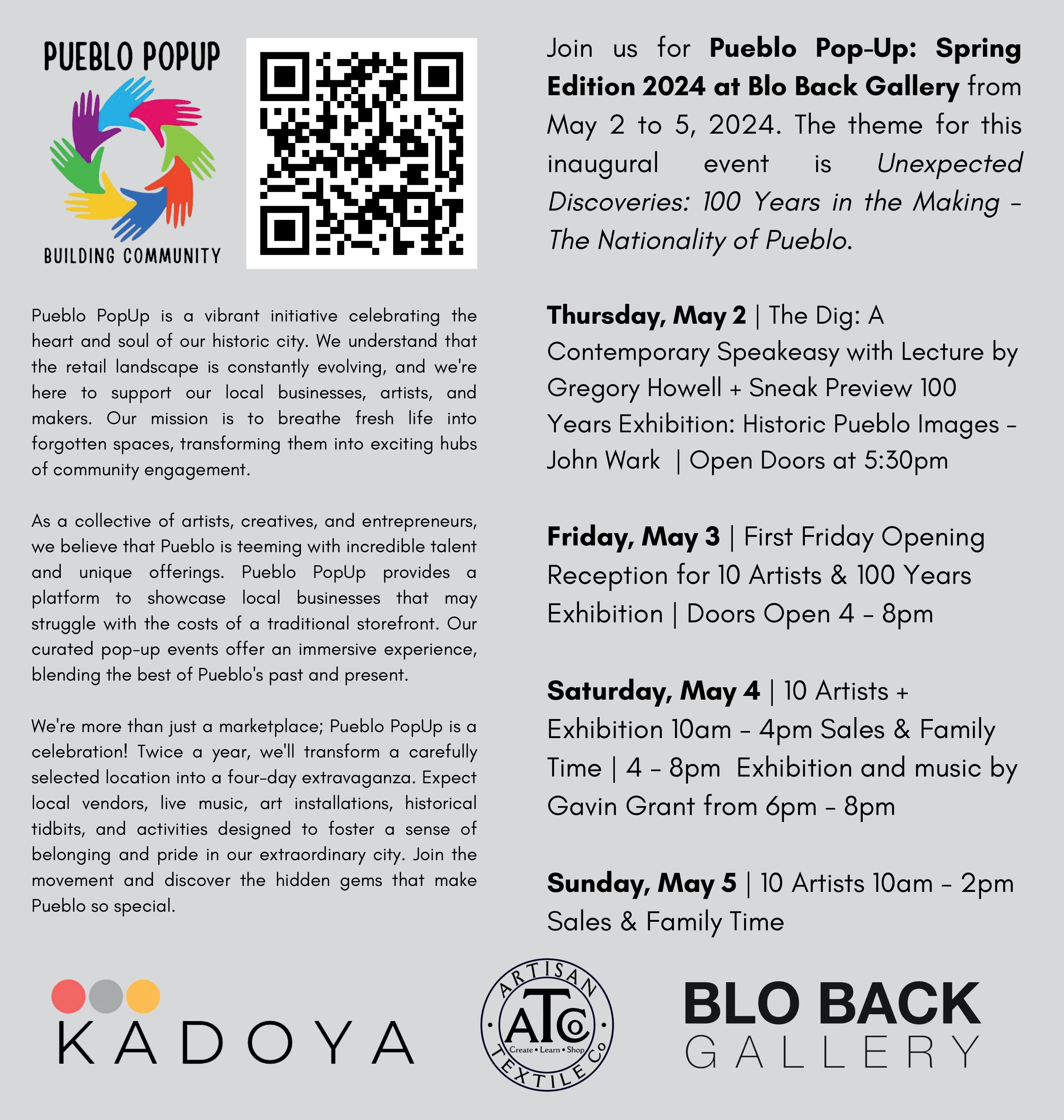 Special thanks to: Creative Consortium of Pueblo, CSU Extension Pueblo County Office, Fountain Creek Watershed, SHED & Pueblo County Master Gardener, Karmic Konnection, Kickass Film Festival, Gary Markstein, Mountainfilm, Mt. Carmel Veterans Service Center, Nature & Wildlife Discovery Center, Pueblo Arts Alliance, Pueblo Film Fest, Pueblo Heritage Museum, Pueblo Popup, Photography by Lyss, Rocky Mountain Realty, Sangre De Cristo Arts & Conference Center, Southern Colorado SBDC, Steel City Music Showcase, Sure Lock Locksmith, Tuxedo Ranch, Voter Voices 2024.