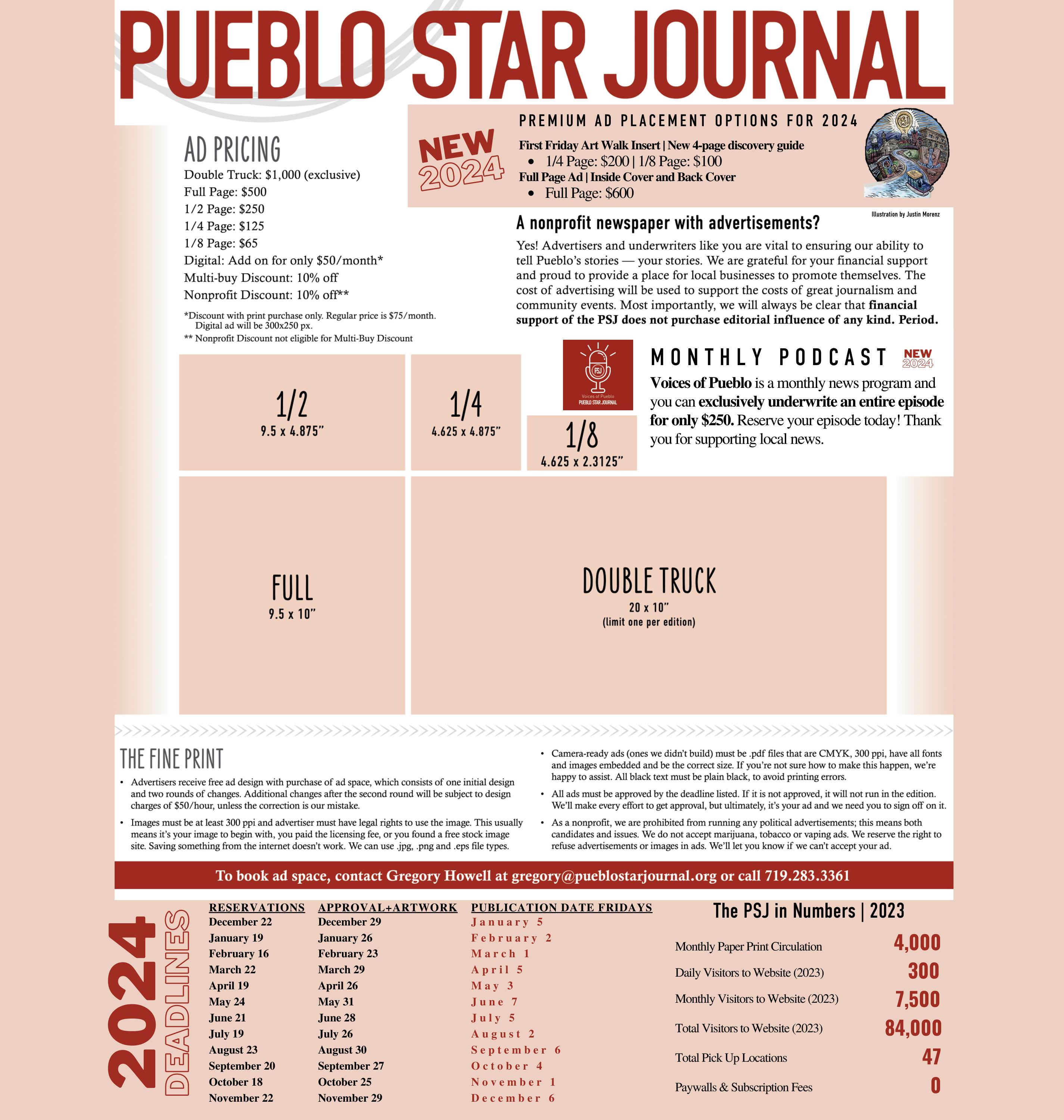 Looking for a meaningful cause to round out your charitable contributions for the tax year? Look no further than the Pueblo Star Journal and support local news. Rational Media Ltd dba Pueblo Star Journal is a 501(c)(3) nonprofit organization. Make your donation by Dec. 31 to ensure that it can be deducted from this year’s taxes.