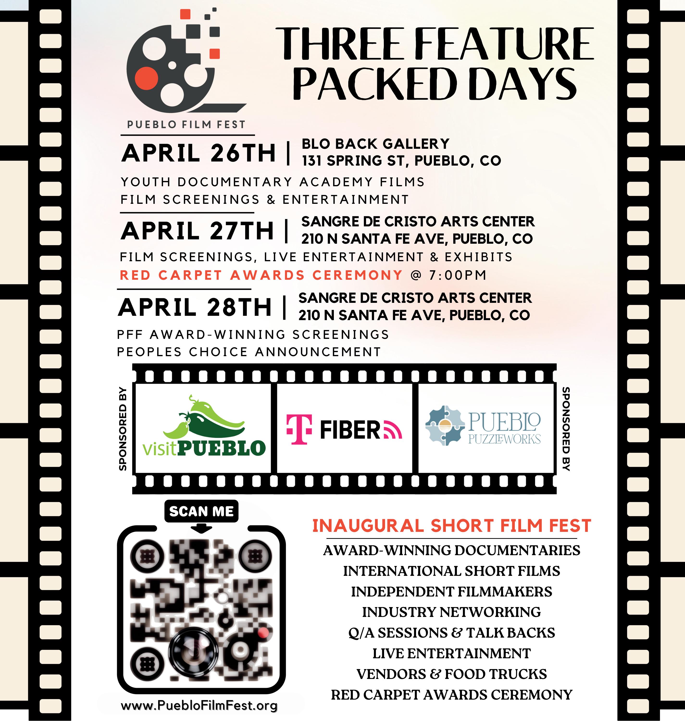 10 a.m. - all day, Sangre De Cristo Arts & Conference Center, 210 N. Santa Fe Ave. tickets at: filmfreeway.com/pueblofilmfest/tickets.