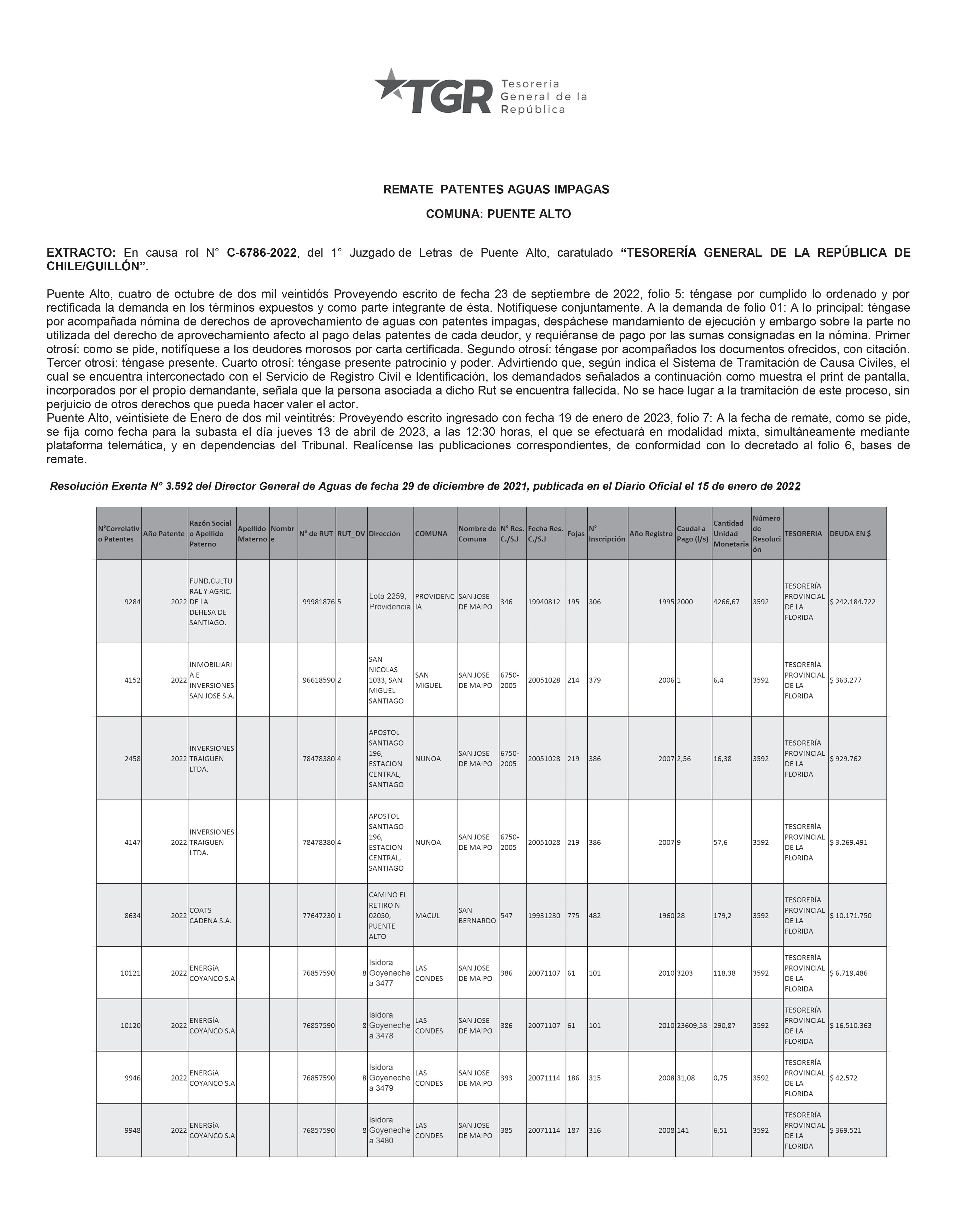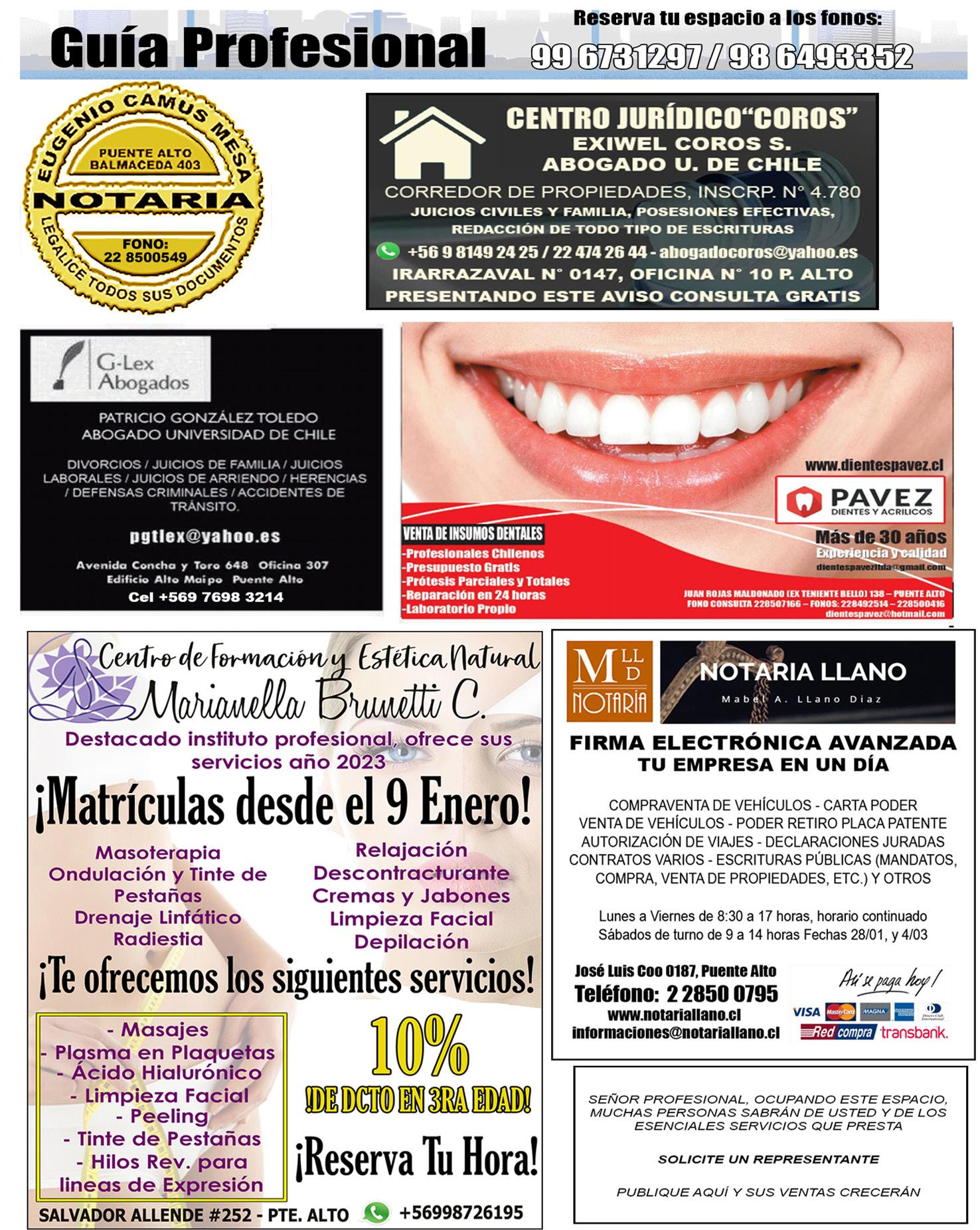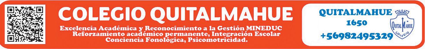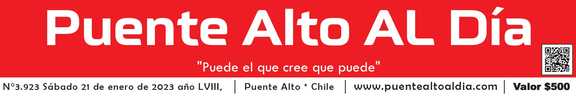 CRÓNICA 2 5 Sábado 11 de Febrero de 2023 FUNDADO EL 14 DE SEPTIEMBRE DEL 1962 EMPRESA PERIODISTICA PUENTE ALTO AL DIA JUAN ROJAS MALDONADO ¨PUEDE EL QUE CREE QUE PUEDE¨ MIEMBRO DE LA ASOCIACIÓN NACIONAL DE PRENSA www.puentealtoaldia.com DIRECTOR Y REPRESENTANTE LEGAL: DOMICILIO: VÍCTOR HUGO ROJAS LÓPEZ EDUARDO CORDERO 0202 OFICINAS GENERALES Y TALLERES GRÁFICOS: Dr. Eduardo Cordero 0202 – Fono +569 9 96731297 Facebook: Puente Alto Al Día Instagran: Puentealtoaldia Twitter: @puentealto_pald Youtube: @puentealtoaldiaTV