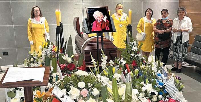 Las queridas Damas de Amarillo rinden respeto a su compañera de ideales en el salón de velatorio vip de la Funeraria Iván Martínez