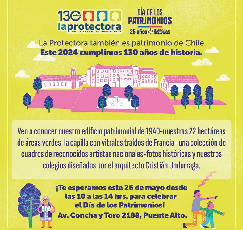 Este 26 de mayo ven a celebrar el día del Patrimonio en la Protectora de la Infancia. Ven con tu familia a conocer su edificio patrimonial construido en 1940, sus 22 hectáreas de áreas verdes, su Capilla con vitrales traídos de Francia, una increíble colección de cuadros de reconocidos artistas nacionales, cientos de fotos históricas y sus colegios diseñados por el reconocido arquitecto chileno Cristian Undurraga.